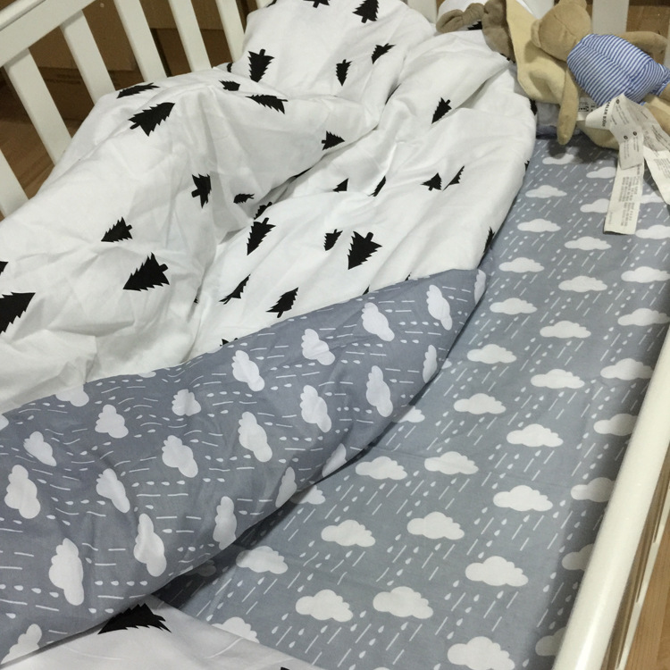 MONFISH Bed sheets 100% cotton little tree and cloud on gray