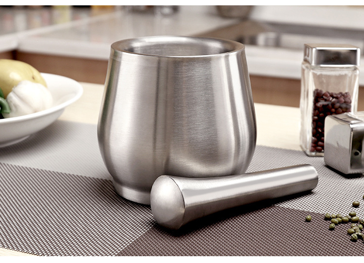 DURABLE AND STABLE: Made of solid metal, the pestle feels substantial in your hand and the mortar sits securely on your kitchen counter. Padding on the bottom makes it stay put even more.